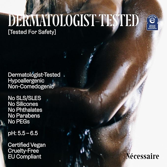 Nécessaire The Body Wash. Fragrance-Free. Multi-Vitamin Gel Cleanser. Nourish, Soften. Hypoallergenic. Dermatologist-Tested. No SLS/SLES. 250 ml / 8.4 fl oz