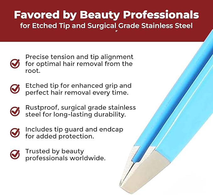 • PRECISION TENSION AND TIP ALIGNMENT: The interior of the tip is etched to easily grip and pull the hair from the root every time, and is favored by beauty professionals worldwide. For the best results, always use tweezers on clean skin without any lotions, oils, or makeup.