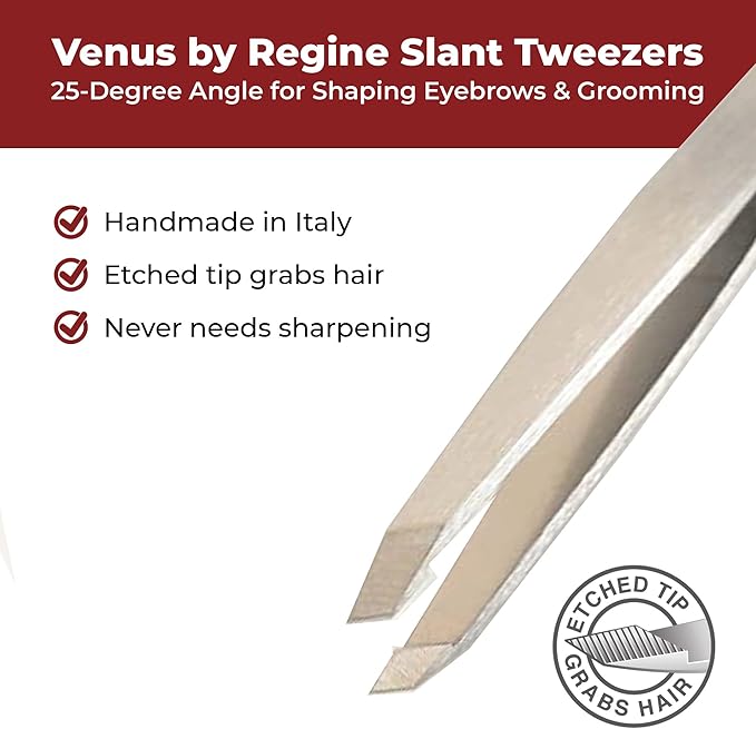 Venus by Regine Slant Tweezers - Handmade Precision Tool for Women & Men, 25-Degree Angle for Shaping Eyebrows & Grooming Facial Contours, Suitable for Eyebrow & Facial Hair Removal (Stainless Steel)
