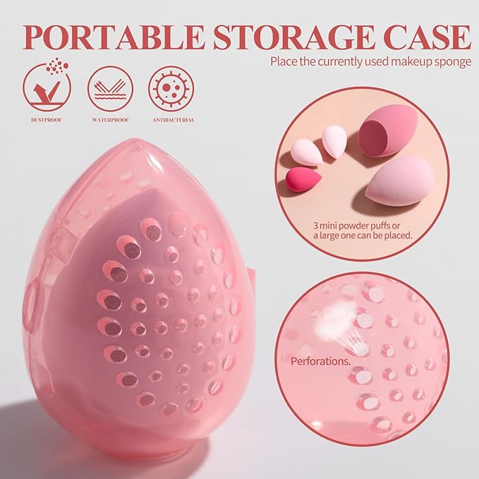 • 🎀Comes with 3 mini and 2 regular-sized makeup sponges for a more seamless makeup application, it also includes a makeup sponge holder for convenient storage while travelling.