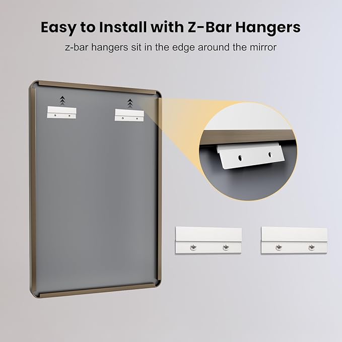 • 【Secure & Easy Hanging Option】: The sturdy wall mirror includes two Z-bar brackets; The brackets are sturdy enough to support the weight of the mirror and ensure the mirror stay securely and sturdily against the wall; Very easy to install