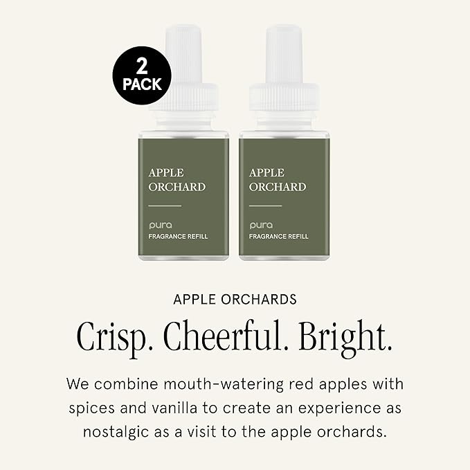 PuraHome Scent Refill - Smart Home Air Diffuser - Up to 120-Hours of Luxury Fragrance per Refill - Home Essential - Clean & Safe Diffuser Fragrance - 2 Pack, Apple Orchards