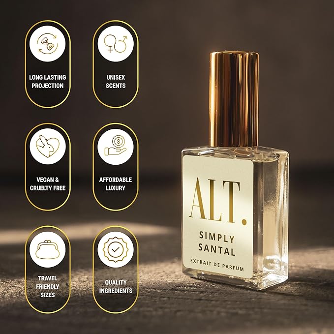 • Signature Scent: Simply Santal by ALT. is your go-to fragrance, a blend of luxury perfume and affordability that leaves a lasting impression. Discover the soft and smoky scent of perfume for women and men with ALT Simply Santal.