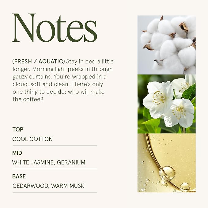 • LINEN COTTON OASIS - Crisp and comforting, recall those peaceful mornings when you wake up on freshly washed and sundried linen sheets. A beautiful candle incorporates relaxing notes of white jasmine and geranium closed with cedar, and musk to create that gentle sun warmth on your skin.