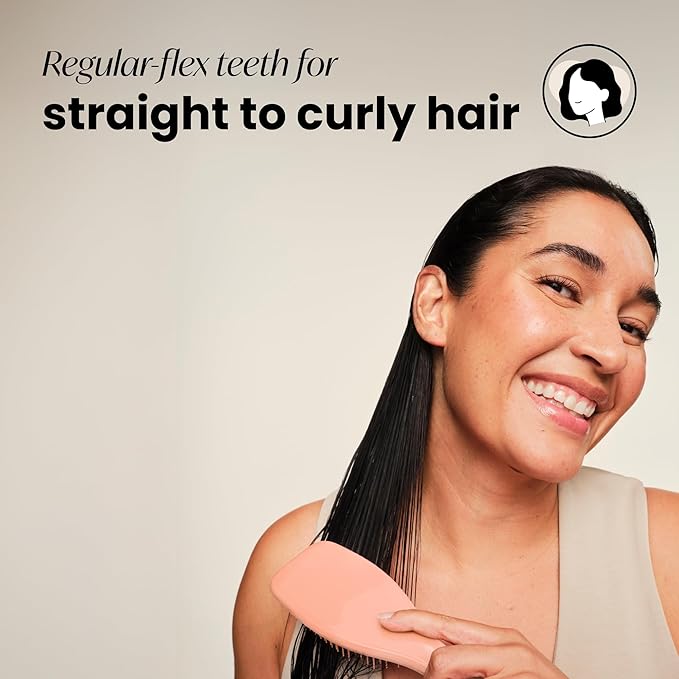 • All Hair Types: This Tangle Teezer hairbrush has regular-flex teeth that gently detangle straight to curly strands