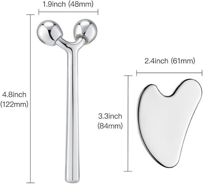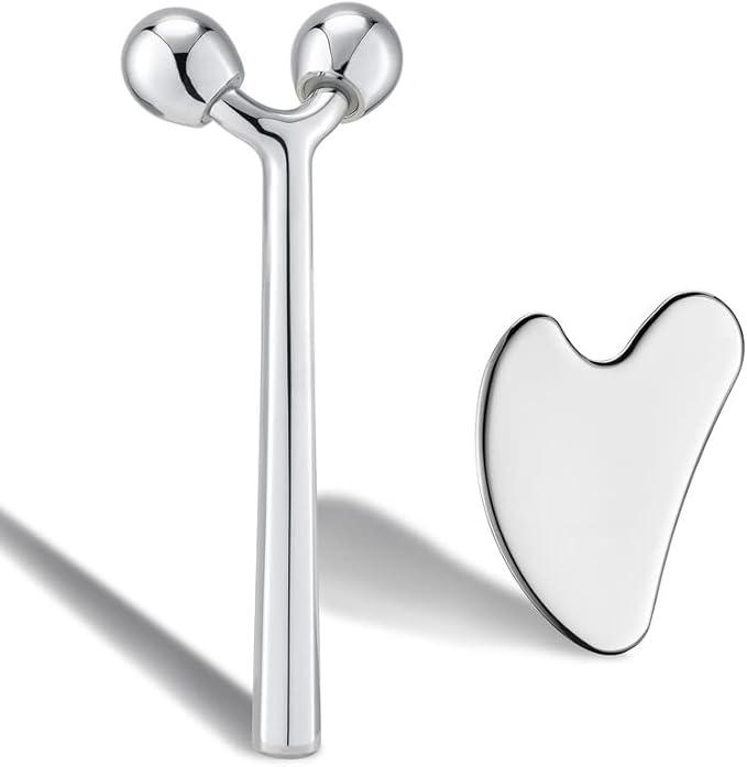 Tekson Facial Roller Massager, 3D Metal face Massage GuaSha Tool for Eye Reduce Puffiness, Face Lift, Anti-Aging, Skin Tightening