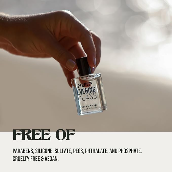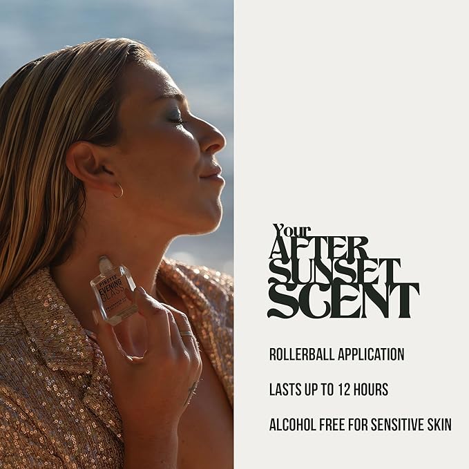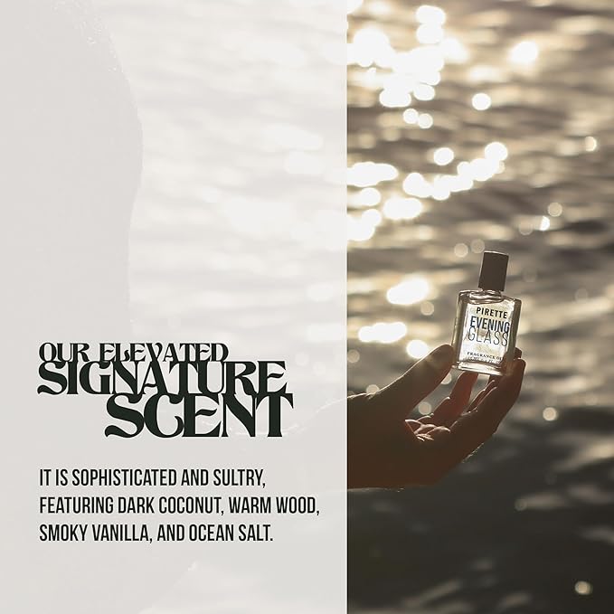 PIRETTE Evening Glass Fragrance Oil Roll On, Beach-Inspired, Long Lasting Perfume Oil with Notes of Dark Coconut, Warm Wood & Smoky Vanilla, Daily Rollerball Perfume for Women and Men, 0.5 fl oz
