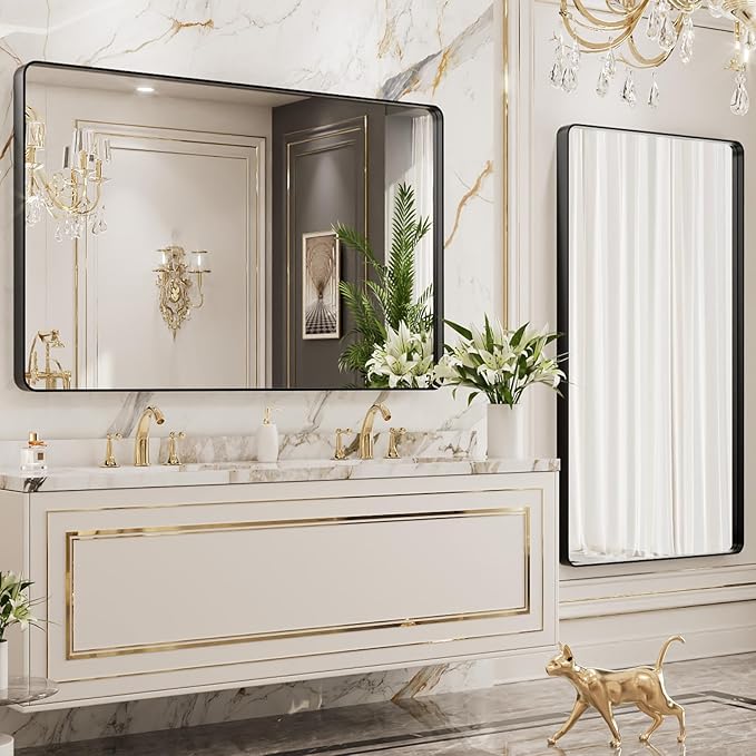 • 【Sturdy Mirror with Premium Materials】: LOAAO metal framed bathroom mirror is built with 4MM tempered glass which features shatter-proof, burst-proof; Aluminum alloy frame which features anti-rust; Ideal for using in bathroom; Solid and sturdy; Durable for use