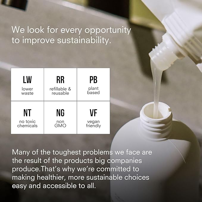 • Less Waste - Designed with sustainability in mind, our 34 ounce lotion is ideal for refilling our 12 ounce bottle or one of your own.