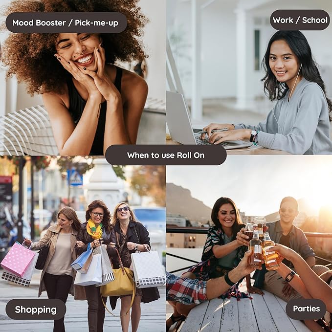 • ON-THE-GO CONVENIENCE - Our roll-ons are thoughtfully crafted with a travel-friendly size, making them perfect companions for your daily adventures. Slip one into your bag or pocket and effortlessly elevate your mood anytime, anywhere. The sleek and compact design ensures mess-free application, while the rollerball glides smoothly over your skin, delivering the perfect amount of scent with each stroke.