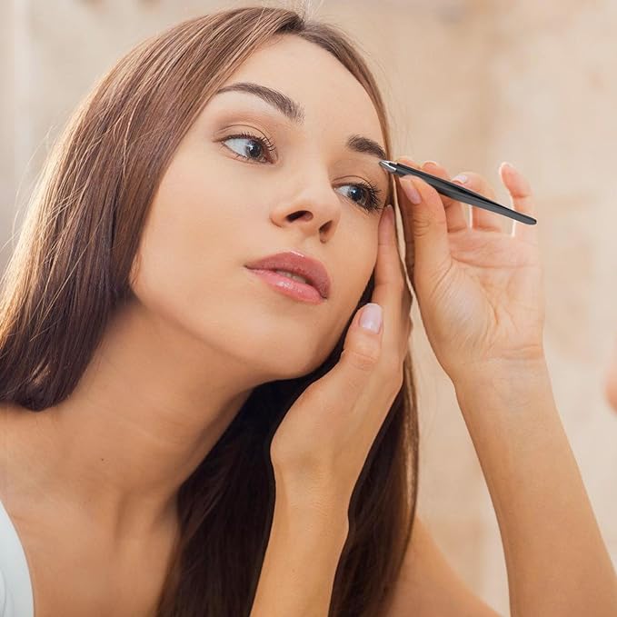 • Set of two precision tweezers with a comfortable grip, perfect tension for optimal control so you can tweeze hairs easily.