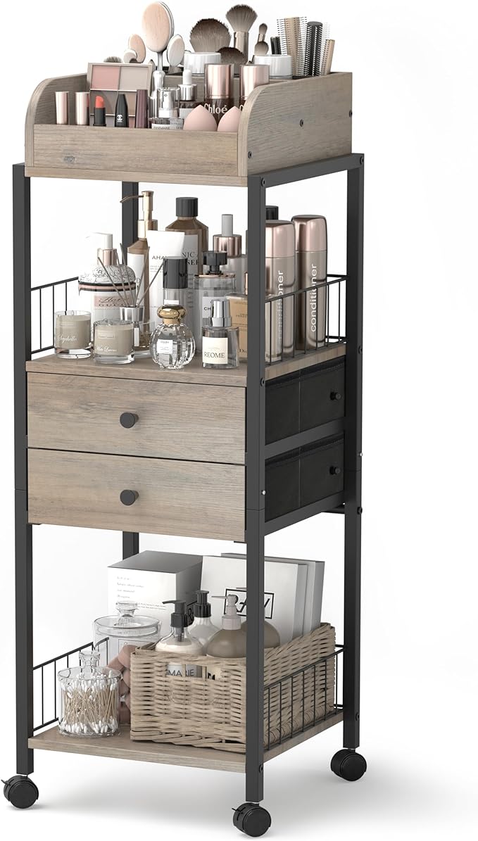 • 【Casters & Foot Pads Included】Rolling on four 360° swivel casters, this skin care organizer can be moved and adjusted in position freely. Built-in brakes on front two casters to keep it in position and add stability. If you don’t need to move, you can choose to install foot pads.