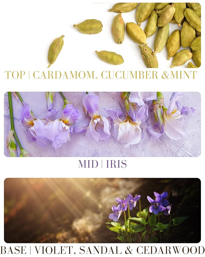 • SCENT PROFILE - TOP: Cardamom, Cucumber, Mint, MID: Iris, BASE: Violet, Sandalwood, Cedarwood. Santal is a fragrance that embraces the idea of freedom, roaming wild, and being under big skies. Bursts of fresh green notes await you with Cucumber and Mint, followed by Cardamom, Iris, and Violet notes that tumble into Australian Sandalwood, Cedarwood, and warm spices. All are rounded out with leather, musk, and notes of spice. One to use as you sit around a campfire as the sun slowly sets.