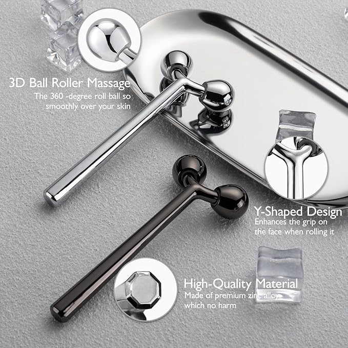 Tekson Face Roller, Facial Metal Massager, Massage Tool for face (Black)