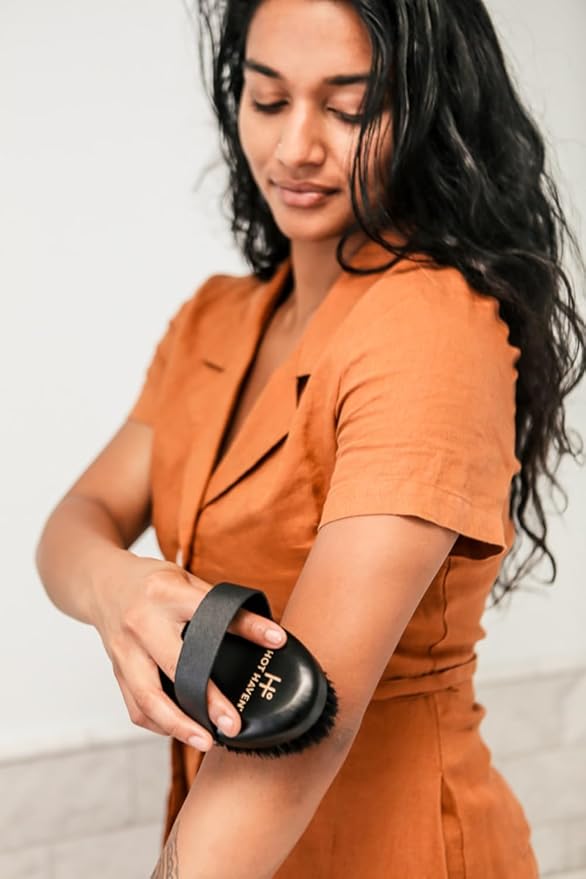 • Improve Circulation - Dry brushing with our body brush exfoliator stimulates the skin and underlying tissues. This can help increase blood flow and oxygen delivery to the skin, promoting healthier skin and overall well-being.