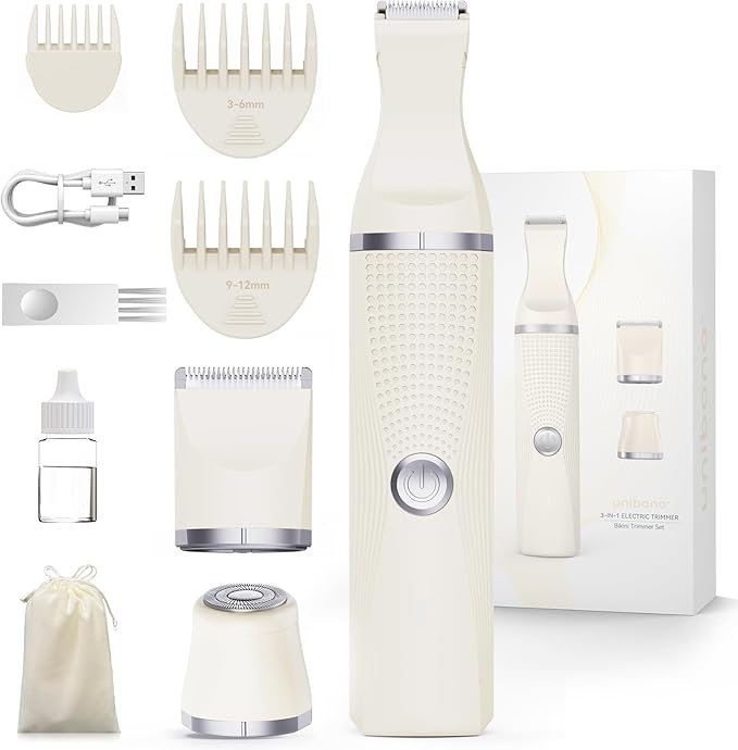 3-in-1 Electric Razor for Women - Waterproof Bikini Trimmer,Rechargeable Electric Shaver for Lady,Pubic Hair Trimmer Women,Personal Trimmer Groomer for Body Hair (Cream, LY)