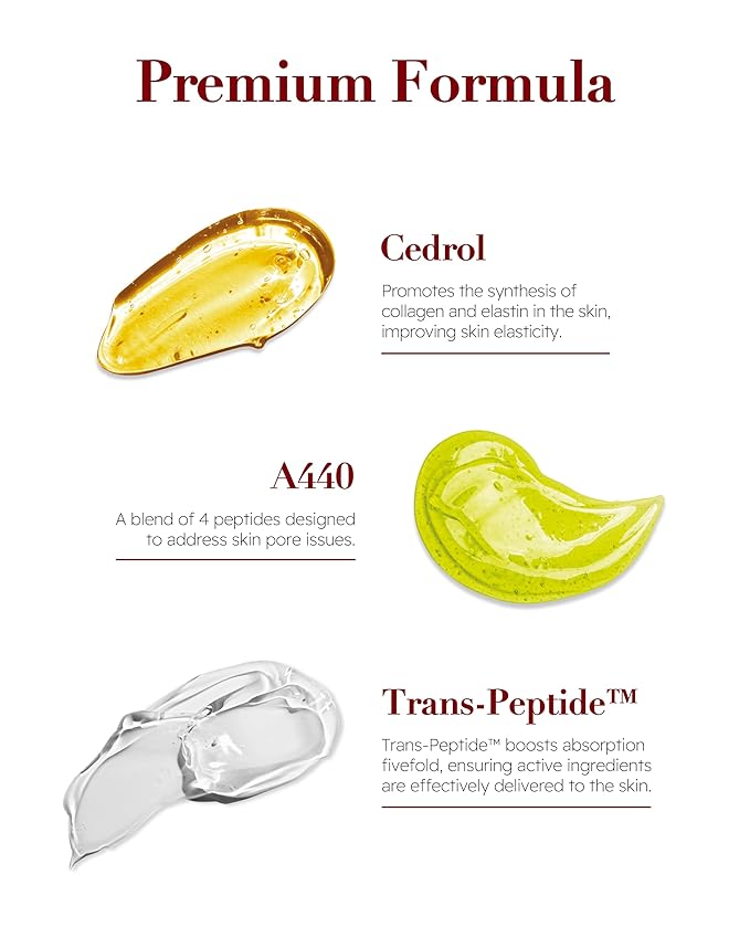 • ENHANCED ELASTICITY - Infused with Cedrol, A440, and Trans-peptide, this cream actively promotes the synthesis of collagen and elastin, resulting in enhanced skin elasticity. These key ingredients work synergistically to provide smooth skin texture and soothing effects, ensuring a revitalized complexion.