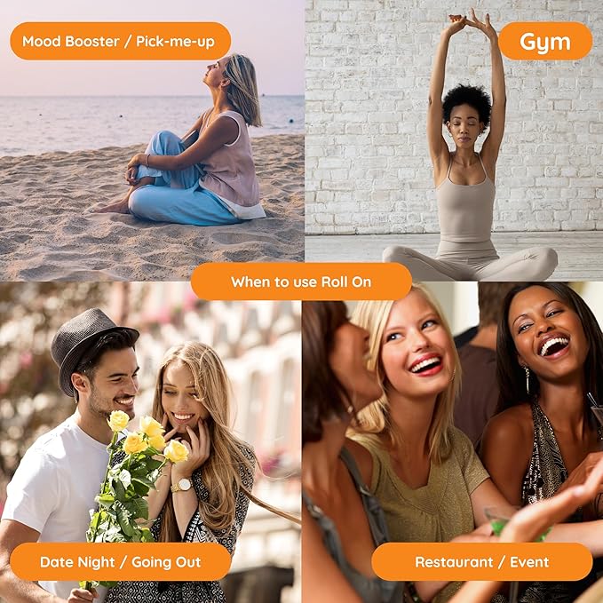 • ON-THE-GO CONVENIENCE - Our roll-ons are thoughtfully crafted with a travel-friendly size, making them perfect companions for your daily adventures. Slip one into your bag or pocket and effortlessly elevate your mood anytime, anywhere. The sleek and compact design ensures mess-free application, while the rollerball glides smoothly over your skin, delivering the perfect amount of scent with each stroke.