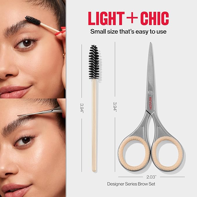 Revlon Designer Series Brow Set, Trimming and Shaping Eyebrow Kit with Scissors and Spoolie Brush, Easy to Use at Home or on The Go, 1 Count