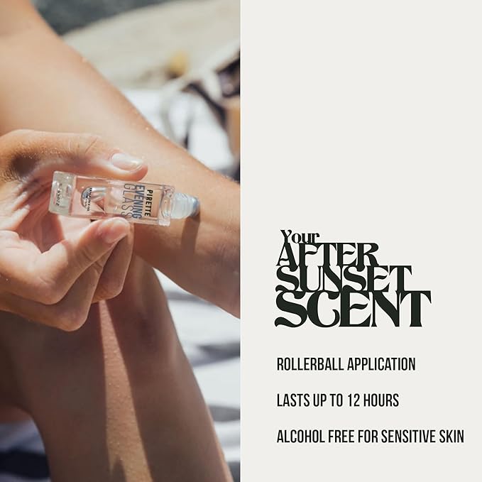 • Sunset Stillness-Inspired Scent: A travel-size rollerball fragrance that captures the magically calm and cool conditions of the ocean before twilight takes over. PIRETTE Evening Glass Fragrance Oil Perfume is inspired by that short-lived stillness of sunset