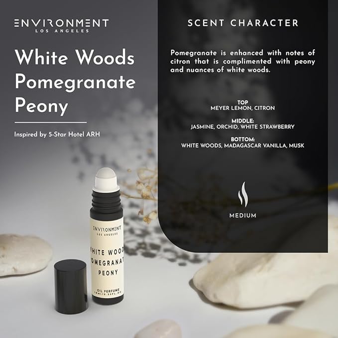 ENVIRONMENT Inspired by 5-Star Hotels ARH 10ml Roll-on Perfume (White Woods | Pomegranate | Peony) Body Oil Fragrance, Roll On Oil, Body Fragrance for Women & Men, Luxury Scents, Vegan & Cruelty-Free
