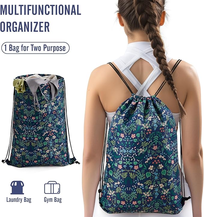 • Multi-purpose Travel Essential: Includes a hanging toiletry bag with 5 compartments for organizing toiletries and cosmetics, featuring a convenient hanging design. The versatile laundry bag holds up to 9 garments and transforms into a backpack, perfect for all your travels.