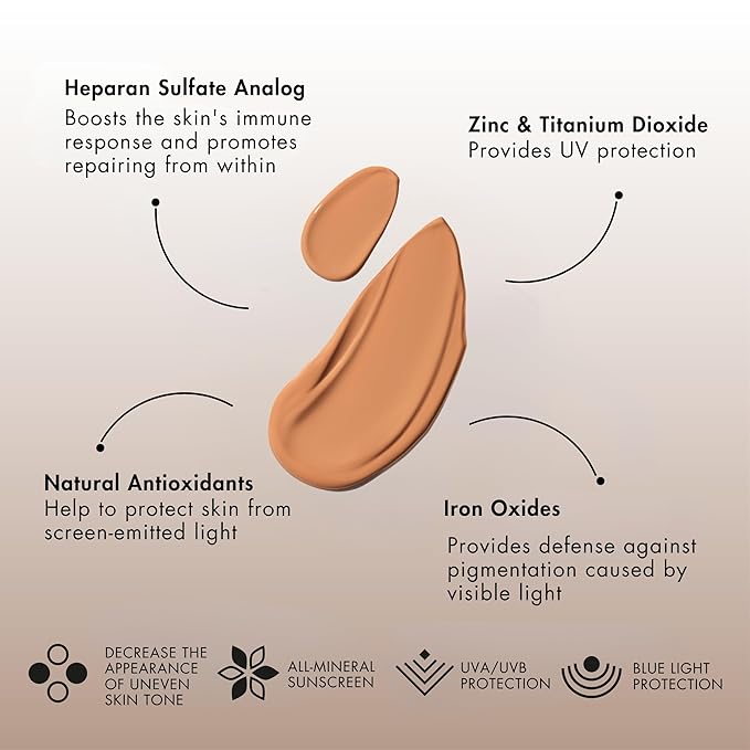• All mineral sunscreen is formulated with patented Heparan Sulfate Analog (HSA) technology to provide unparalleled hydration and skin protection.
