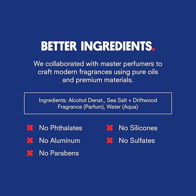 • SEA SALT + DRIFTWOOD: Opens with clean, aromatic notes of mandarin, cardamom, blue sage and lavender surrounded by the freshness of salted ocean air. Coastal greens combine with sea salt, driftwood and sun-bleached cedar for a scent that is dynamic, fresh and easygoing.