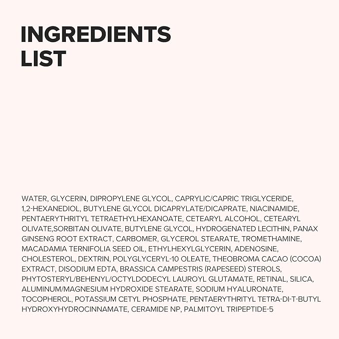 • Key Ingredients: Ginseng Extract for skin elasticity and protection, Retinal for reduction of wrinkles and Niacinamide for brightness