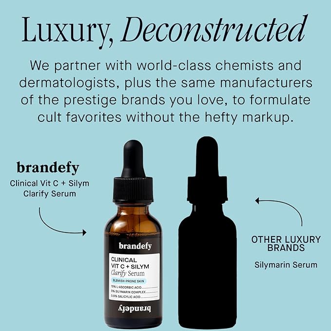 Brandefy Vitamin C + Silym Clarify Serum - Face Salicylic Acid Serum for Blemish-Prone Skin, Promotes Clear Complexion, Anti-Aging, Brightening, Made in The USA (1 oz)