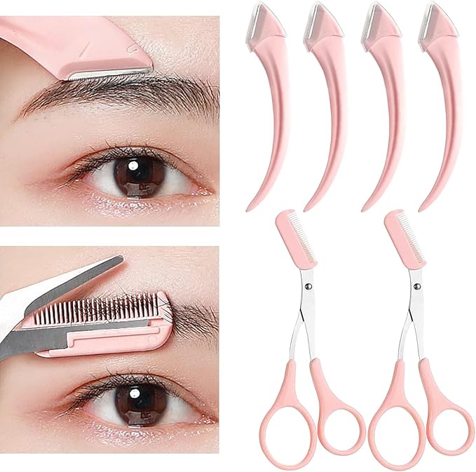PACKAGE: The package contains 4 pieces of half-moon shaped eyebrow trimming blades with protective cover, 2 eyebrow scissors with eyebrow comb, perfect eyebrow trimming tool, complete with all accessories, all in one, to meet the needs of your long-term replacement or sharing with friends and family.