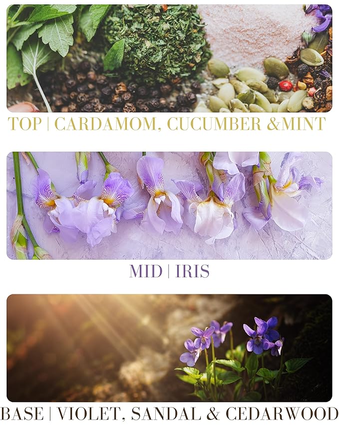 • SCENT PROFILE - Top: Cardamom, Cucumber, Mint, Mid: Iris, Base: Violet, Sandalwood, Cedarwood. Santal is a fragrance that embraces the idea of freedom, roaming wild, and being under big skies. Bursts of fresh green notes await you with Cucumber and Mint, followed by Cardamom, Iris, and Violet notes that tumble into Australian Sandalwood, Cedarwood, and warm spices. All are rounded out with leather, musk, and notes of spice. One to use as you sit around a campfire as the sun slowly sets.