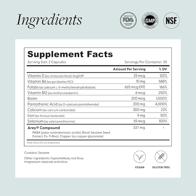 • AID REPIGMENTATION IN EARLY GREY STAGES: Our advanced formula supports the repigmentation of hair in its early stages of greying, reducing grey and increasing vibrancy. Arey works best on those who have 0-30% grey hair.