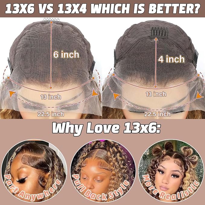 • 【Honey Blonde Human Hair Lace Front Wigs Cap Size】:(22.5 inch)Average Size Cap,Deep Curly Human Hair Wig with 4 Combs and two Adjustment Straps,Fit for Most Women,13x6 HD Lace Front Wigs Human Hair,Any Part,Can do any Part Easily,Easy to Install,Durable and Breathable Lace Material,Comfortable to Wear.