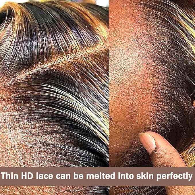 • 【Ombre Lace Front Wigs Human Hair Texture】:4/27 Highlight Lace Front Wigs Human Hair,200% Density Transparent Lace Front Human Hair Wigs for Black Women with Baby Hair Glueless Wigs Human Hair Pre Plucked.13x6 HD Lace Front Wigs Human Hair,Allowing you to Create any Parting Style You Desire.