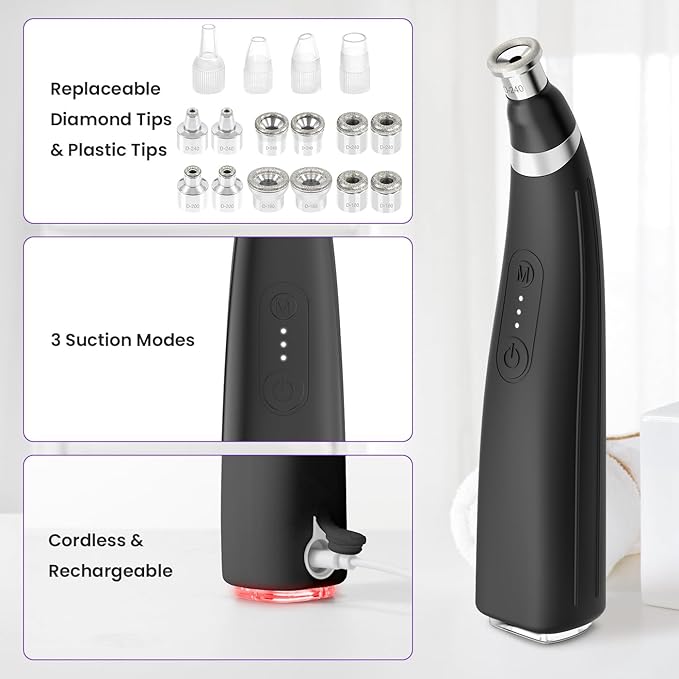 • ๐—š๐—ฒ๐—ป๐˜๐—น๐—ฒ ๐˜†๐—ฒ๐˜ ๐—˜๐—ณ๐—ณ๐—ฒ๐—ฐ๐˜๐—ถ๐˜ƒ๐—ฒ: Concerned that the suction might be too strong and cause abrasions? Put your worries aside. This microdermabrasion tool is safe and gentle for all skin types. It features 3 adjustable suction levels, We would recommend starting with the lowest suction level until you are more familiar and comfortable with using the microdermabrasion tool.