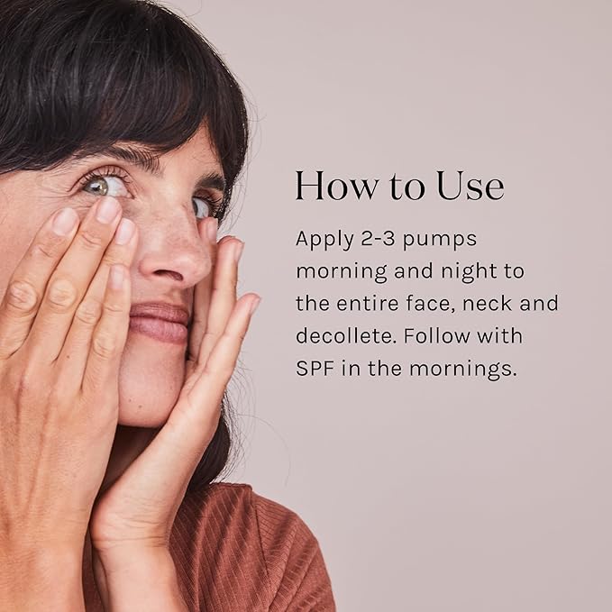• HOW TO USE: Apply 2-3 pumps morning and night to entire face, neck, and decollete. Follow with sunscreen in the mornings.