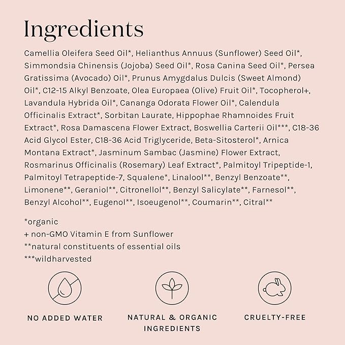 • Peptide Serum: A potent blend of luxurious plant oils and advanced peptide technology to help firm, lift and plump the skin.