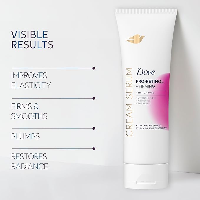 Dove Cream Serum Pro-Retinol + Firming for Elasticity and Firmness, with Collagen Peptides, Niacinamide and Antioxidants Lotion, 8 oz