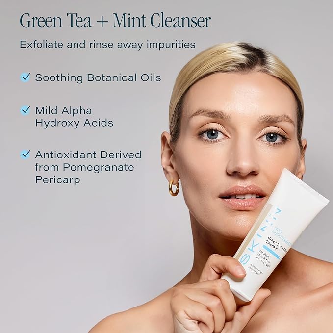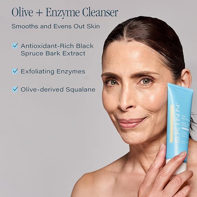 • Gel + Cream Face Wash: Cleanse in the morning and night with the SKINN Green Tea + Mint Cleanser and Olive + Enzyme Cleanser. This optimally balanced cleansing regimen will improve your skin both day and night. Includes 1 (4oz) Green Tea + Mint Cleanser and 1 Olive + Enzyme Cleanser (4oz).