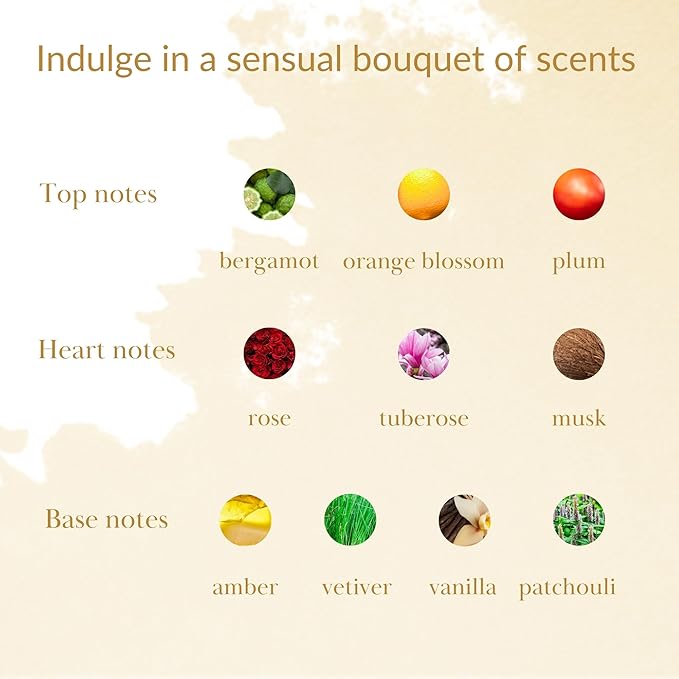 • Floral & Fruity Scent: Enjoy a vibrant olfactory experience as juicy plum and bergamot top notes unfold into a floral heart of Arabian rose and tuberose. This floral women’s fragrance finishes with a warm base of vanilla, amber, patchouli, and vetiver, creating a balanced and enchanting scent