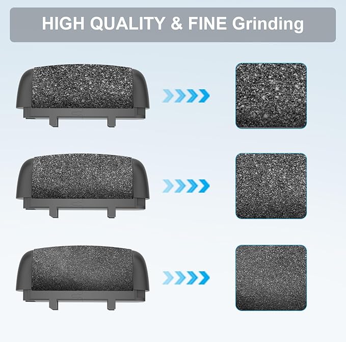 • 【8 LARGER GRINDING HEADS】: With more Bigger , more Larger Quartz Crystals Roller Heads, you could enjoy a more Faster,Finer, Effective, Stable Grinding callus remove foot care at home .