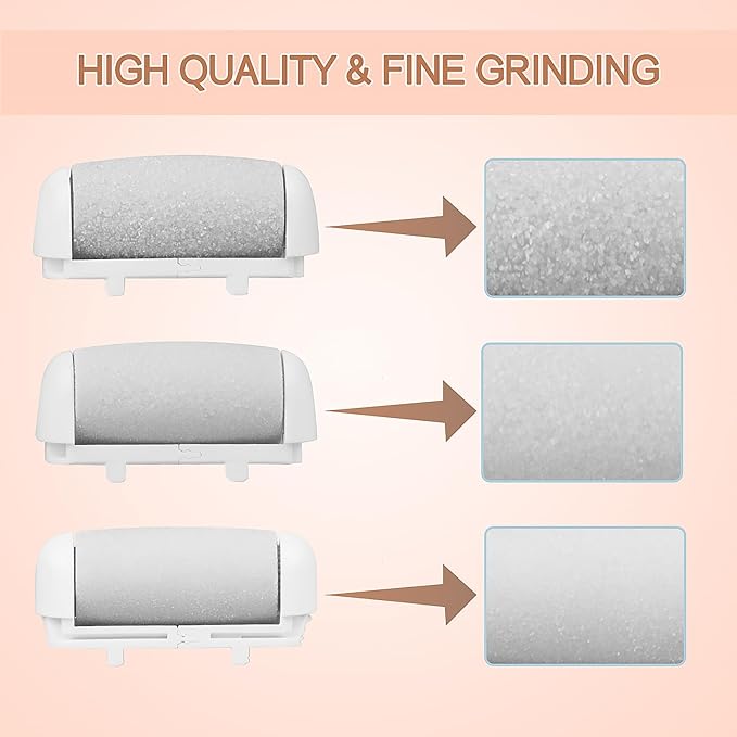 • 【PACKAGE INCLUDED】:Package includes 3 Extra Coarse, 3 Regular Coarse, 2 Fine Coarse Refill Rollers; Fits for AdamPark Electric foot file Callus Remover.Any other brands and models are not supported.
