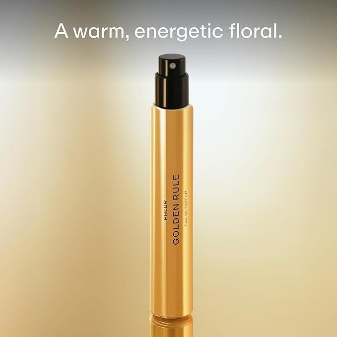 PHLUR Golden Rule Eau de Parfum - Travel Size Perfume Fragrance - Fruity Floral Perfume with Mandarin, Pink Pepper, Pear, Jasmine, Coconut Milk, Sandalwood & Vanilla Cream (9.5mL)