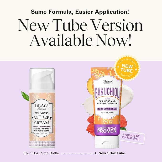 LilyAna Naturals Bakuchiol Face Lift Cream with Sea Moss and Peptide Complex - Face Cream for Women - Moisturizing and Lifting Facial Cream - Anti-Aging Overnight Moisturizer - Made in the USA - 1 oz