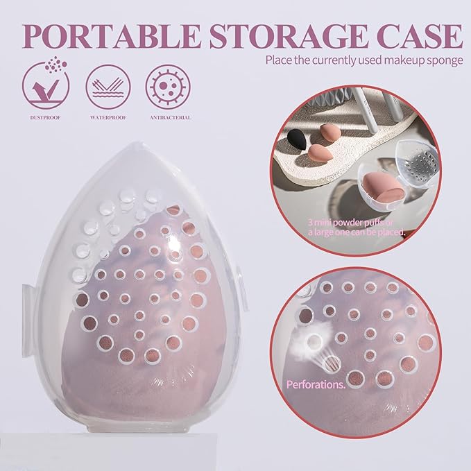 • 🎀Comes with 3 mini and 2 regular-sized makeup sponges for a more seamless makeup application, it also includes a makeup sponge holder for convenient storage while travelling.