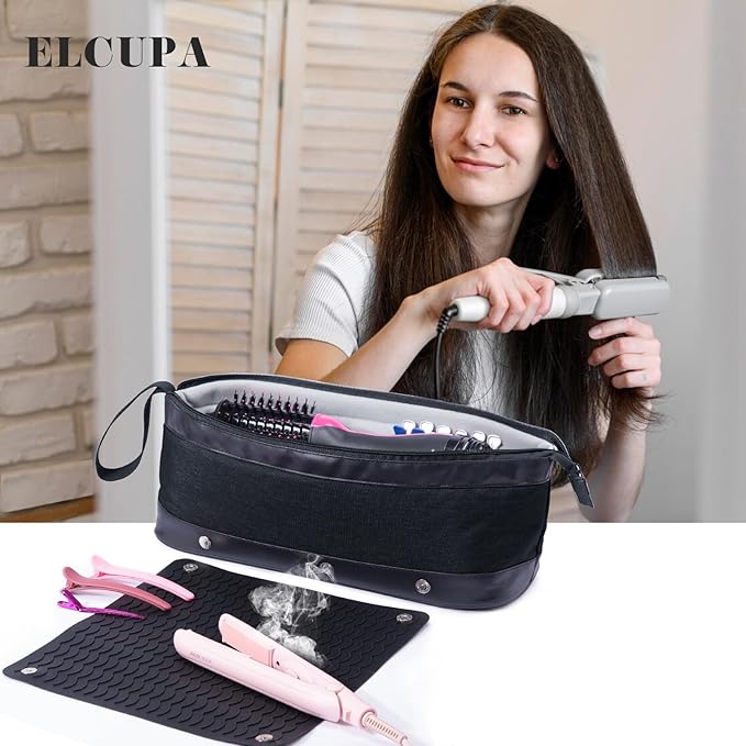 • ✨Multipurpose Hair Travel Bag – This 2-in-1 design hair tool holder combines a hair case with a large open main compartment and a silicone heat-resistant mat. A must-have travel essentials to help carry your hair tools wherever you go.