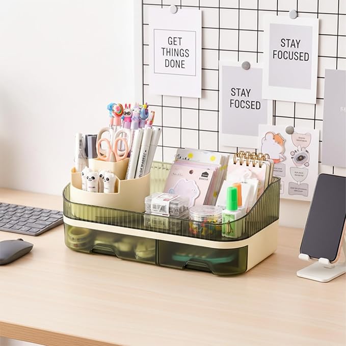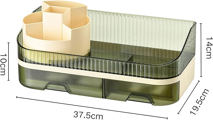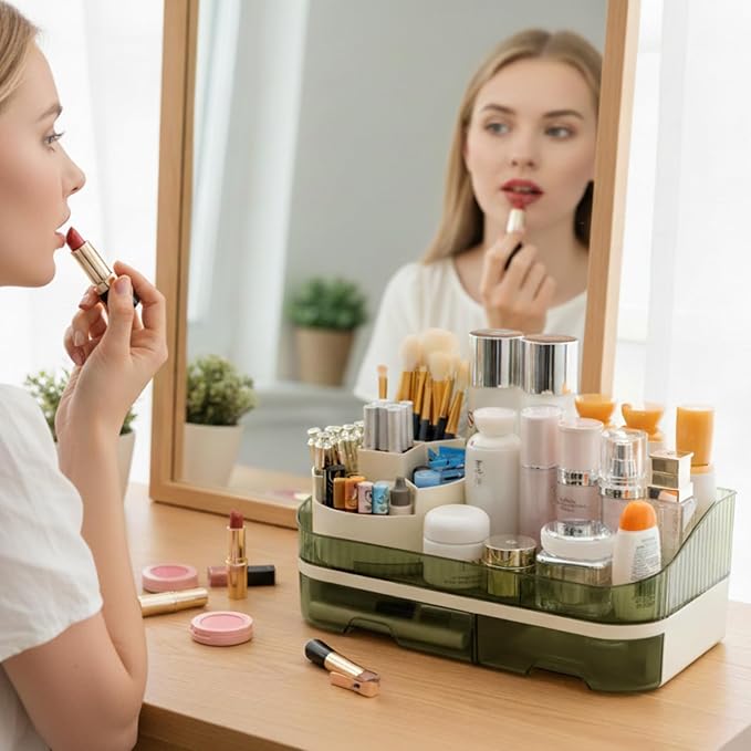 • Makeup Organizer Countertop Dual Drawers Sliding drawers store 12 lipsticks or eyeliners neatly—clutter-free vanity or bathroom counter storage