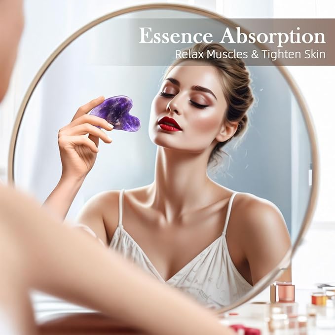 • Energizing Skincare: The guasha stone is a nice tool for facial massage. It can relax your facial tissue and awaken facial skin, help your skin absorb your skin absorb the cream or lotion faster and more fully