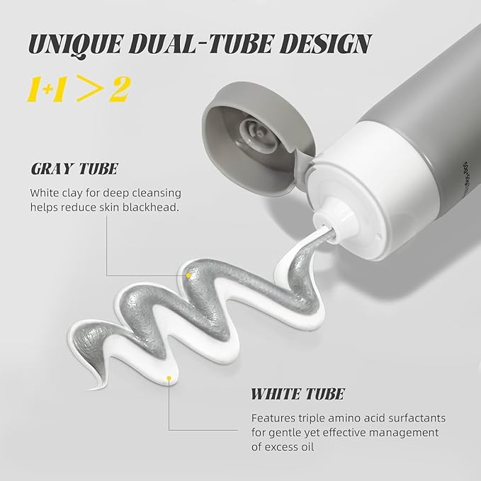 • STEP 1:Gentle and Effective Face Wash (3.52 Oz) - protects the skin barrier and does not strip the skin, this double tube cleanser uses gentle amino acid surfactants to maintain skin’s pH balance and hydration, and Amazonian White Clay to deep clean pores